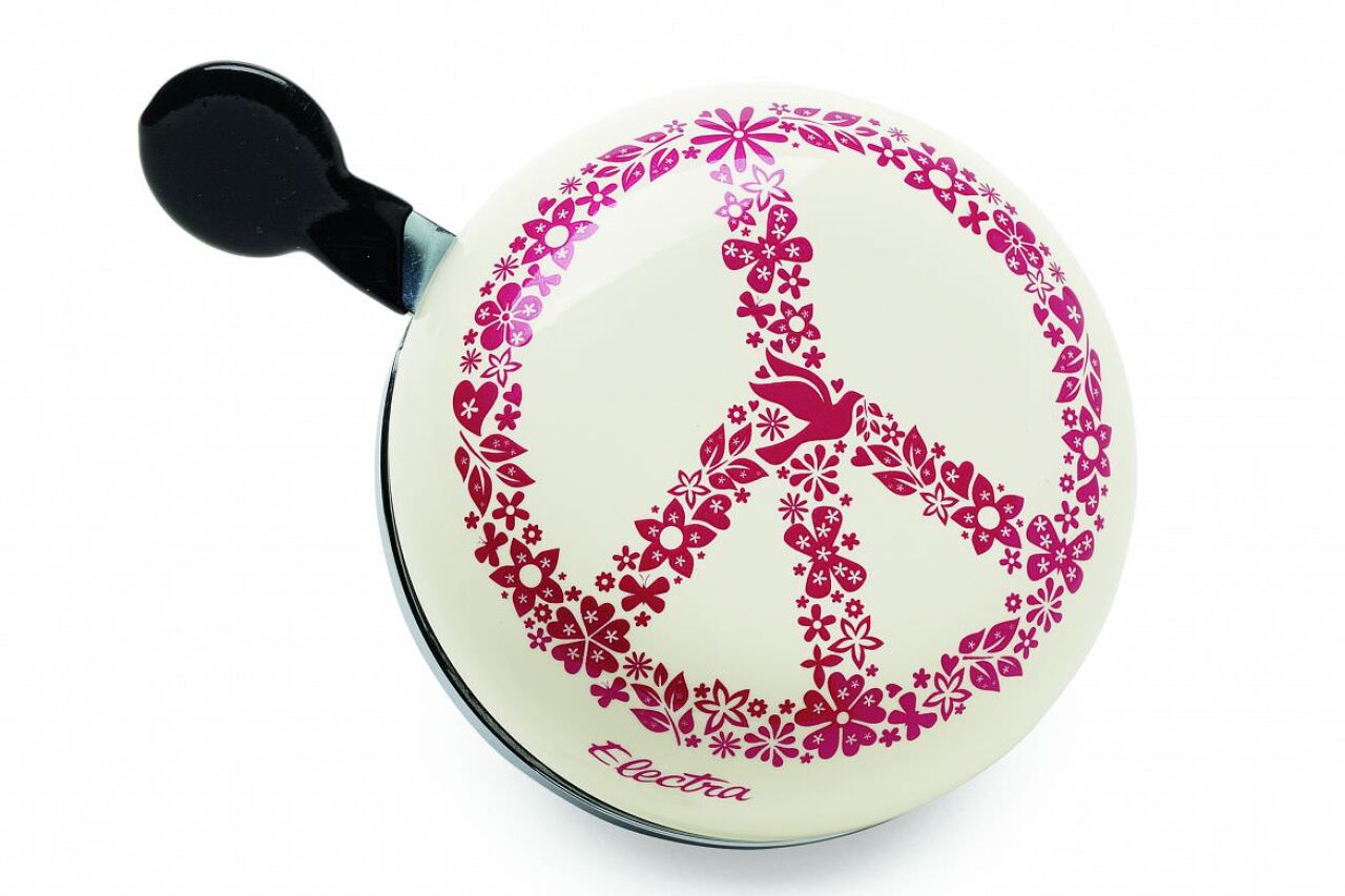 Стильный звонок от компании Electra – Peace Ding Dong Bell Cream. Выполнен из алюминия и подходит к любому типу руля.