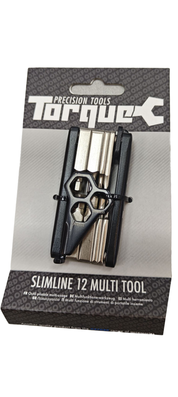 Аккуратный многофункциональный инструмент от английского бренда Oxford Torque Slimline сделан из прочного хромованадиевого сплава. Включает в себя 12 инструментов: